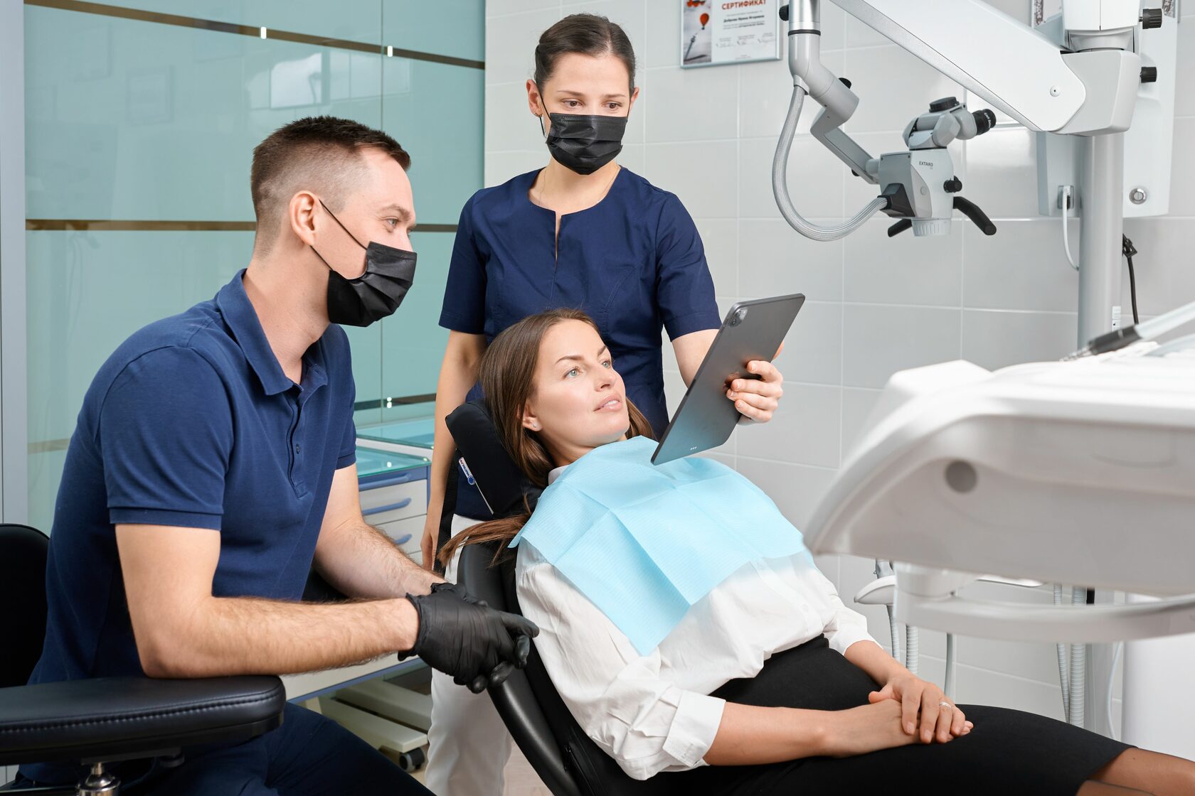 Врач отвечает на все вопросы пациента, и, в случае необходимости, проводит процедуру сканирование зубов при помощи 3D сканера 3shape для изготовления индивидуальной каппы. Эта каппа будет использоваться для минерализации терапии и домашнего отбеливания.